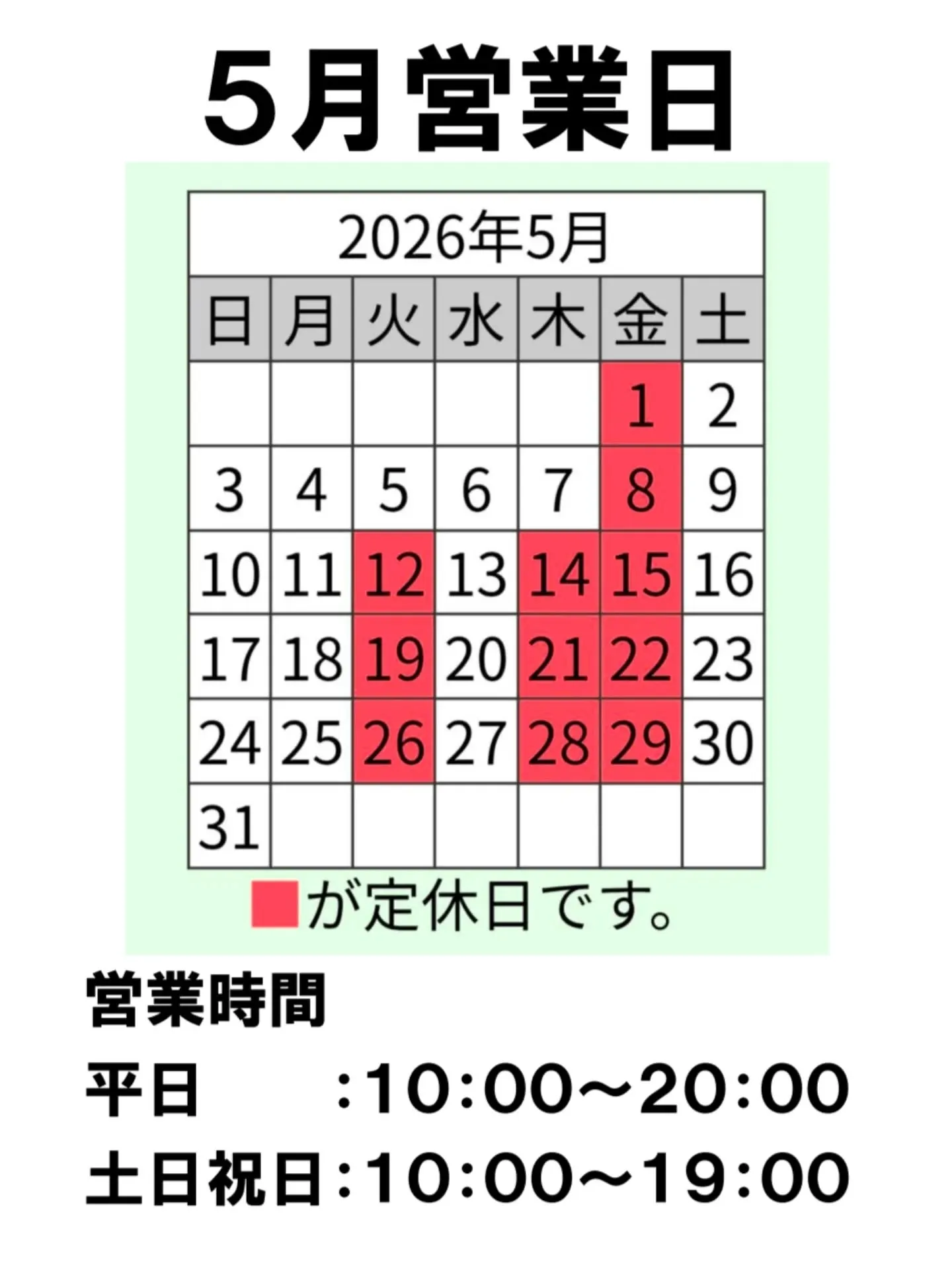 5月営業日のお知らせ